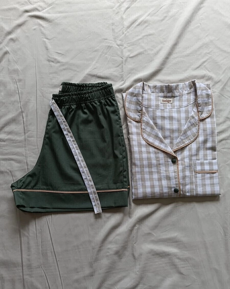 Tecido: Verde Musgo e Xadrez Bege / Tricoline 100% algodão.